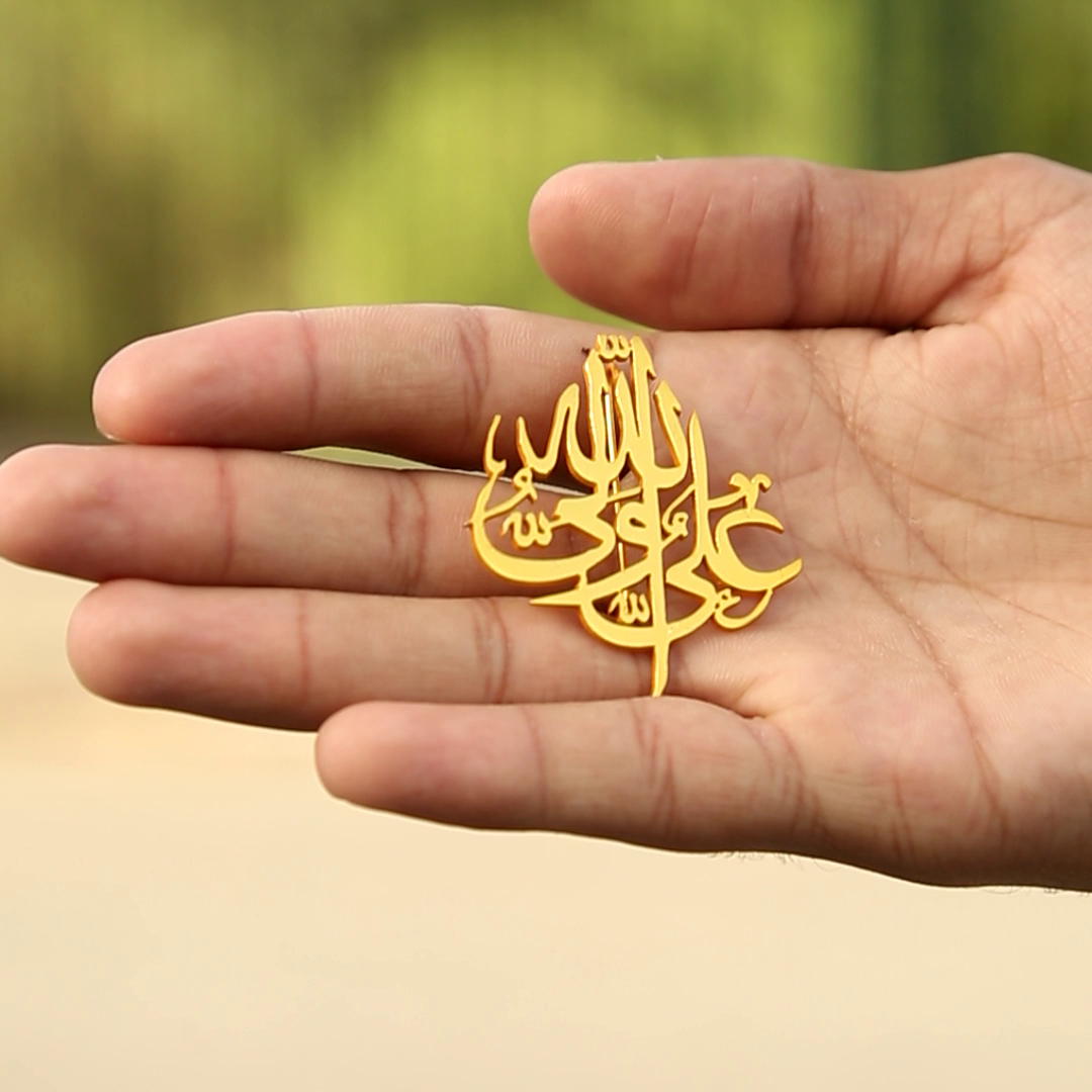 This beautifully crafted Ali Ul Waliullah lapel pin is more than just an accessory—it's a powerful statement of devotion. Designed with intricate detailing and a polished finish, it pays tribute to the legacy of Hazrat Ali (A.S) and the deep spiritual significance of the phrase "Ali ul Waliullah." Perfect for formal wear, jackets, bags, or traditional attire, this pin allows you to carry your faith with pride—subtle, stylish, and spiritually meaningful.